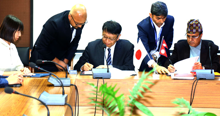 अर्थ मन्त्रालयमा सोमबार आयोजित कार्यक्रमममा नेपालका लागि जापानका राजदूत मासामिची साइगो र अर्थसचिव राजन खनालले अनुदान सहायतासम्बन्धी सम्झौतापत्रमा हस्ताक्षर गरे । ती सम्झौता कार्यान्वयन गर्नेसम्बन्धी अर्को सम्झौतापत्रमा पनि जापानी सहयोग नियोग (जाइका) की प्रमुख प्रतिनिधि युमिको आशाकुमा र अर्थ मन्त्रालयका सहसचिव श्रीकृष्ण नेपालले सोमबारै हस्ताक्षर गरे ।