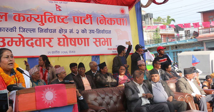 आफूले पर्दा पछाडि बसेर रवीन्द्र अधिकारीलाई राजनीतिक उचाइमा पु¥याउन राजनीतिक योगदान गरिरहेको भट्टराईले बताइन् । ‘आज पार्टीले त्यो योगदानको कदर गर्दै मलाई उम्मेदवार बनाएको छ, अब हजुरहरुले साथ दिनोस्’– उनले भनिन् । कास्की– २ का जनताको भरोसा र विश्वासलाई कहिल्यै डगमगाउन नदिने प्रतिबद्धता व्यक्त गर्दै शोकलाई शक्तिमा बदलेर निर्वाचनको अभियानमा सरिक हुन उनले जनसमुदायमा आग्रह गरिन् ।