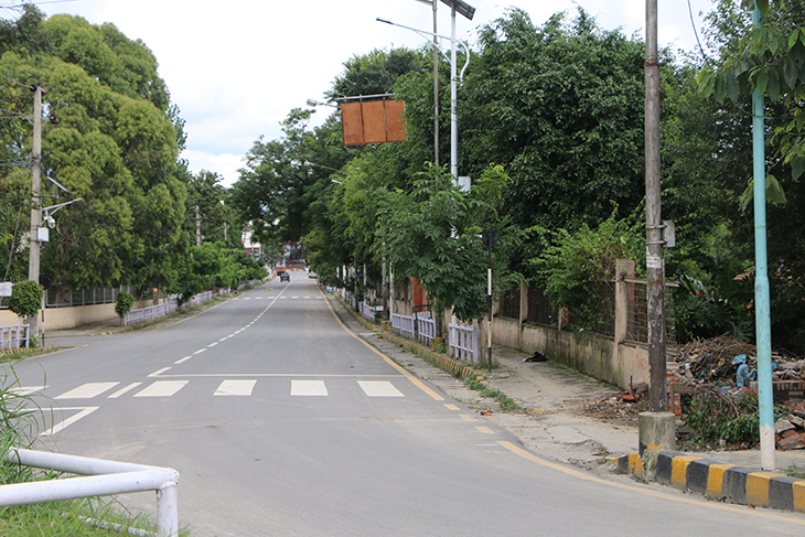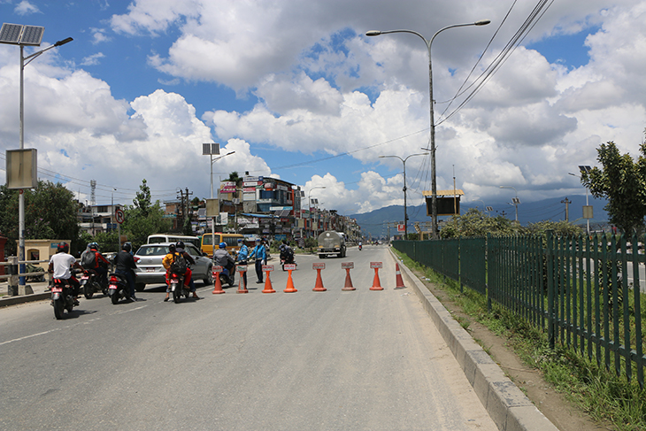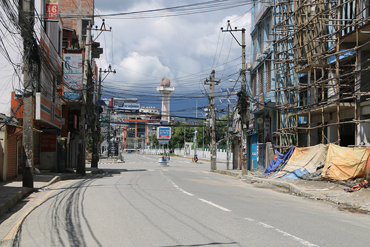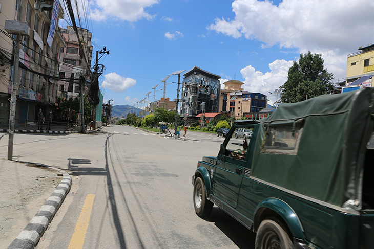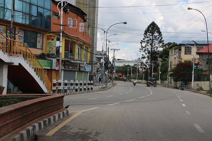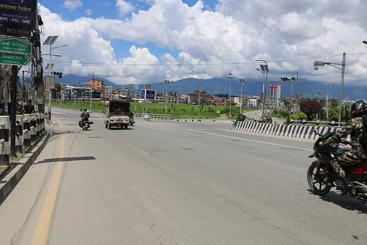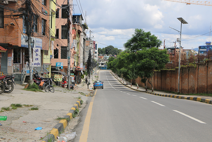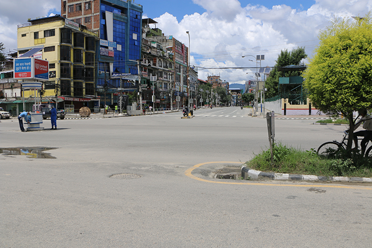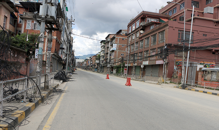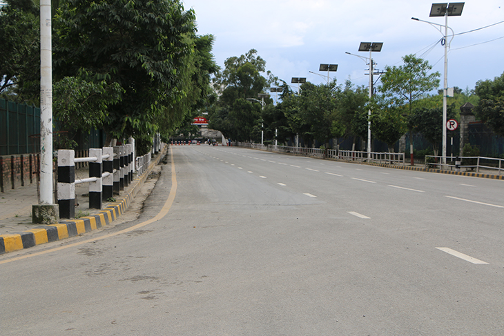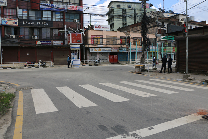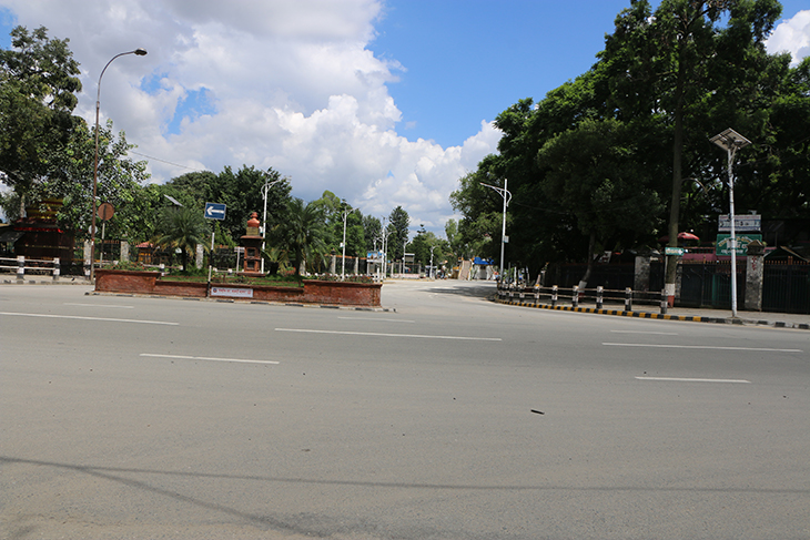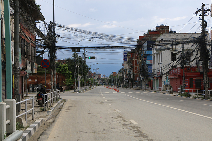 कोरोनाभाइरसको संक्रमण रोकथाम तथा नियन्त्रणका लागि भन्दै उपत्यकाका ३ वटा जिल्ला प्रशासनले संयुक्तरूपमा बुधबार राति १२ बजेदेखि जारी गरेको निषेधाज्ञाका कारण काठमाडौं, ललितपुर तथा भक्तपुरका सडक र बजार चकमन्न भएका छन् । बिहीबार दिउँसो राजधानीका तीनै जिल्ला डुलेर न्युजकोसेली संवाददाताले क्यामरामा कैद गरेका प्रतिनिधिमूलक दृश्यहरू यहाँ प्रस्तुत गरिएको छ ।