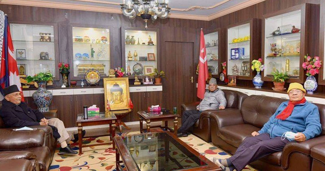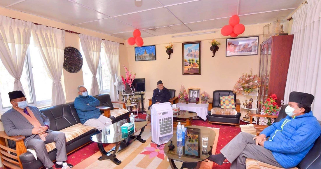केहीबेर अध्यक्षद्वयबीच छलफल भएलत्तै उपाध्यक्ष वामदेव गौतम समेत थपिए । त्यसपछि तीन नेताबीच केहीबेर कुराकानी भएको खुमलटार स्रोतले जनाएको छ । खुमलटारबाट फर्कने क्रममा पुल्चोकस्थित मन्त्री निवासमा समेत पसेर प्रधानमन्त्री ओलीले गृहमन्त्री एवं नेकपाका सचिवालय सदस्य रामबहादुर थापा ‘बादल’ सँग पनि भेटवार्ता गरे ।